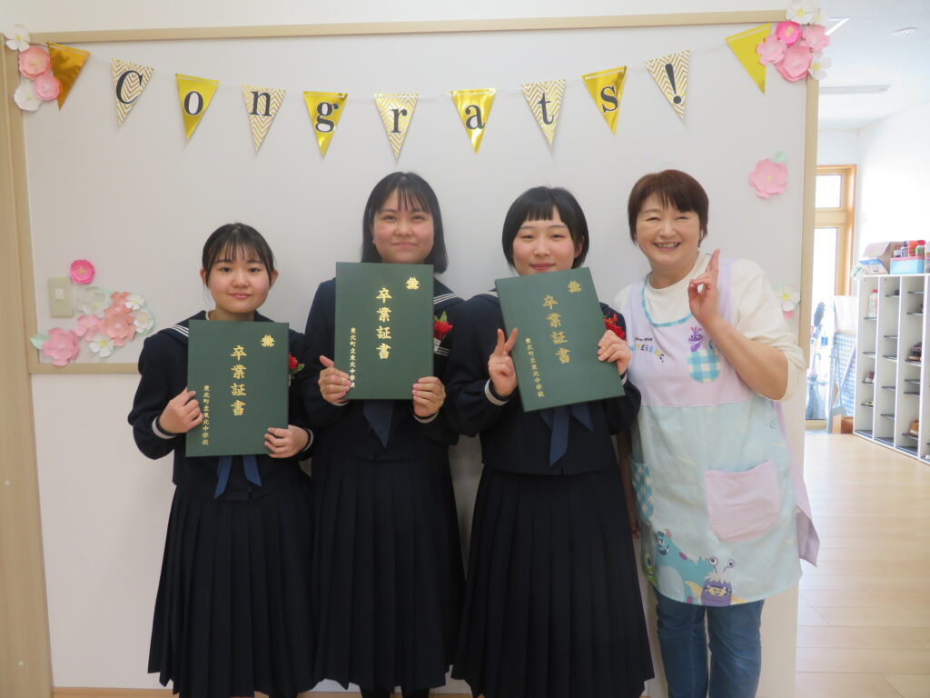 中学校卒業式の日、卒園児が遊びに来てくれました~( ;∀;)♡