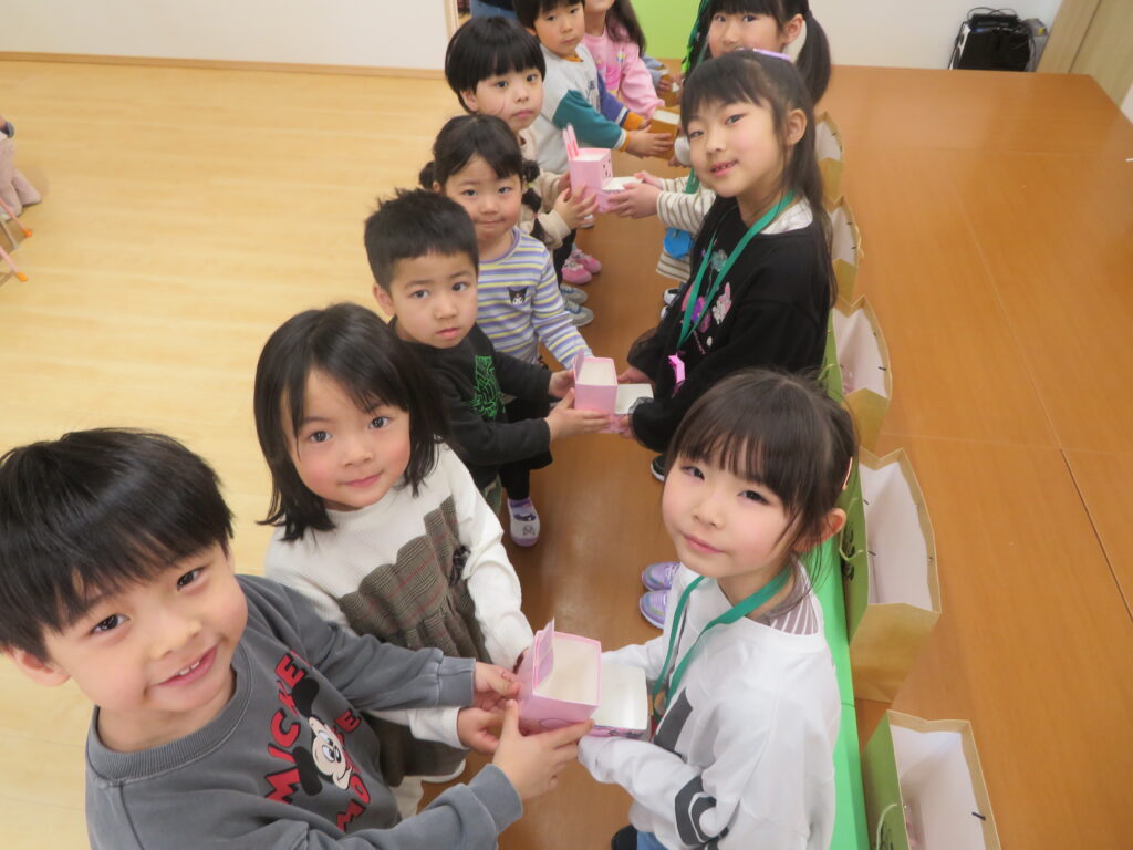 今まで沢山遊んでくれた年長さんに、各クラス”ありがとう”の気持ちを込めてプレゼントを作りました♡