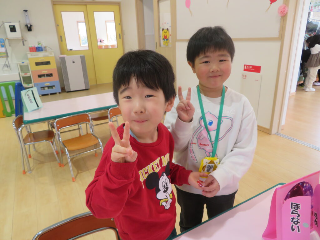 年長さんからも、手作りのキーホルダーをもらって、嬉しそう(^^♪