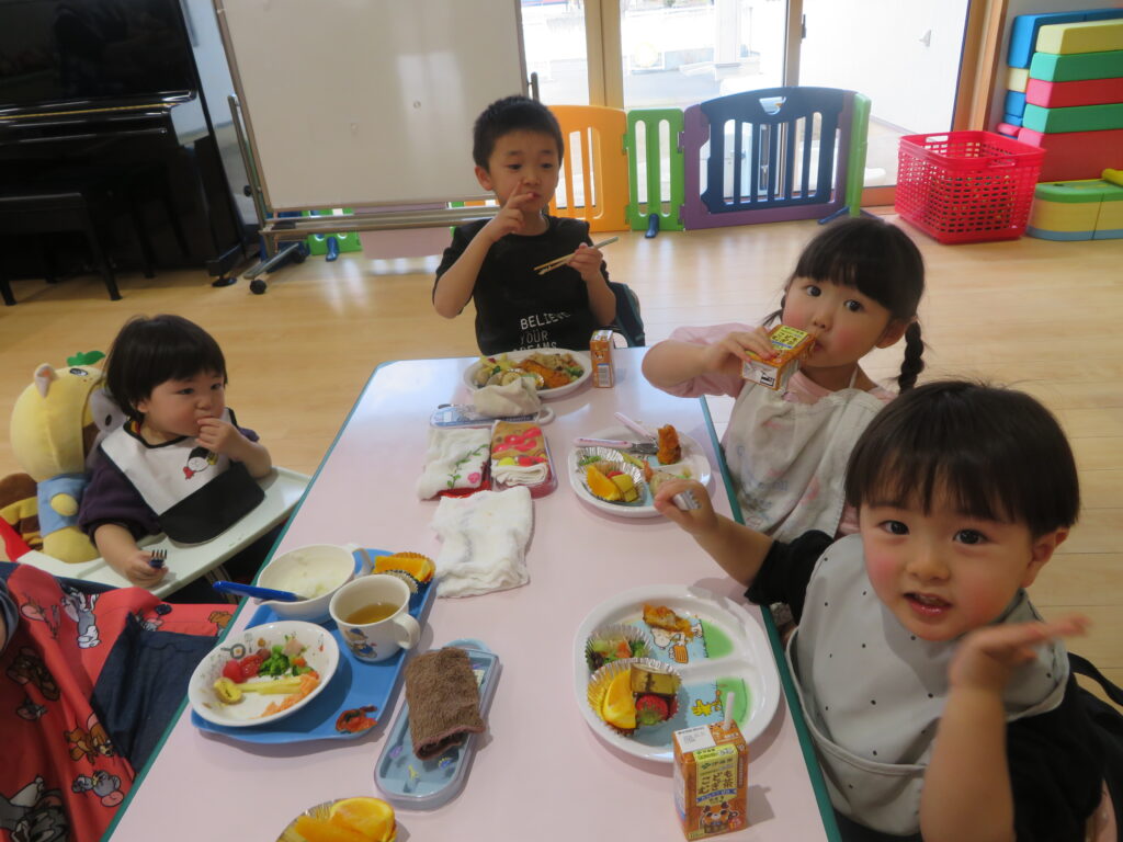 年長さんが、それぞれのテーブルに交ざって食べましたよ♪