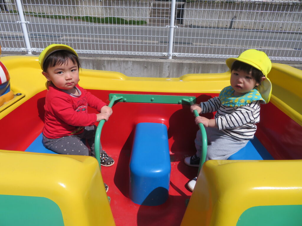 暖かい日が増え、ベランダ遊びや、園庭遊びを楽しんでいる子どもたちの様子をご紹介します(^^♪