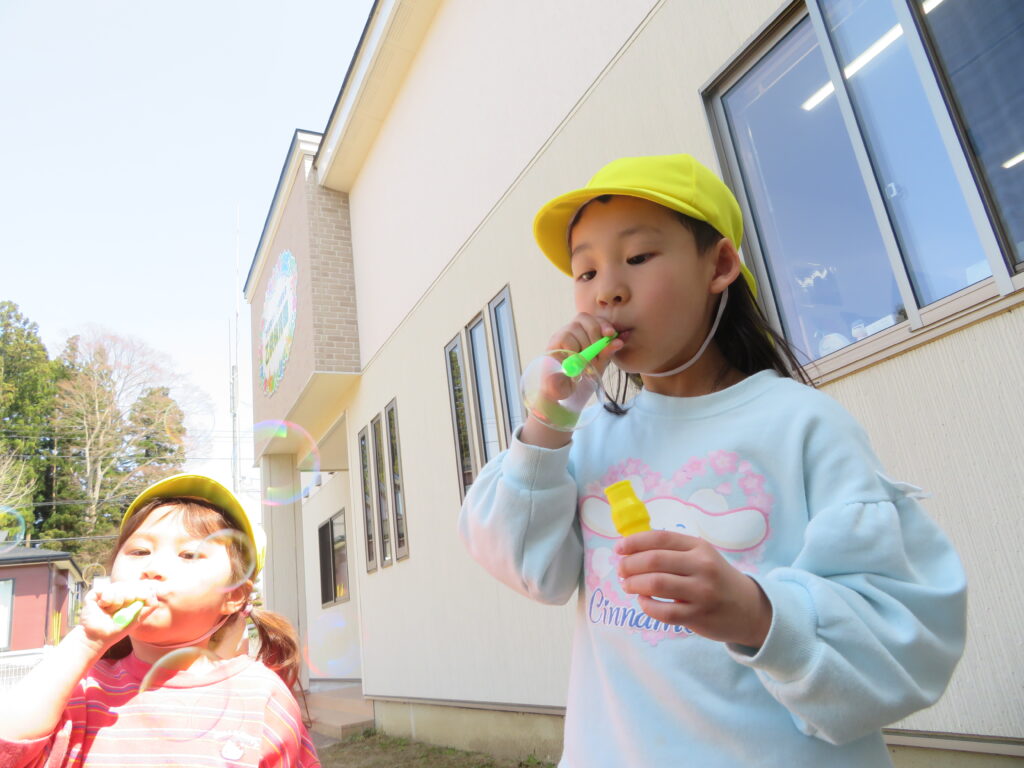 だれが、1度に沢山のシャボン玉を出せるか競っていました♪