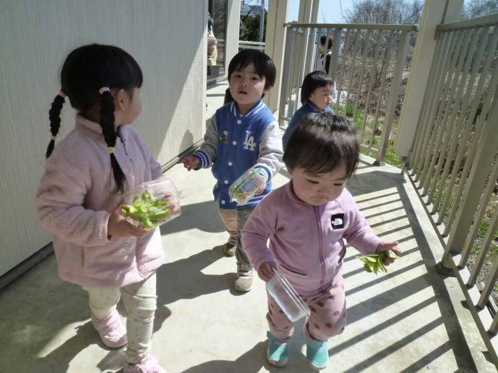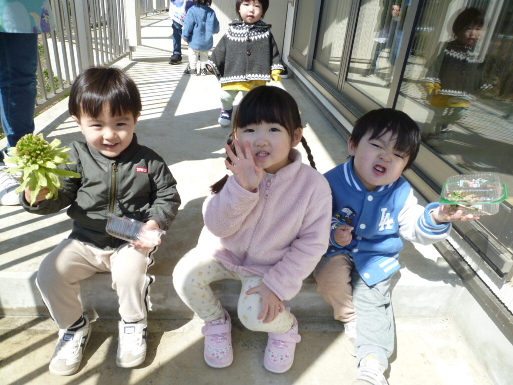 未満児さんは、ベランダから、ふきのとうを見つけて喜んでいました🌸